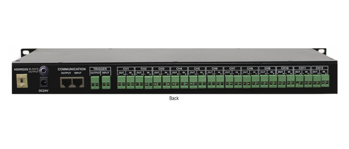 Each unit has individual address code, and with RJ45 8-core network ports which include one group 485 signal, one group balanced audio signal, one group DC24V